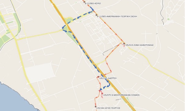 Πιο συγκεκριμένα οι λεωφορειακές γραμμές 36, 36B, 36K θα ακολουθούν την τροποποιημένη διαδρομή που παρουσιάζεται με κόκκινη διακεκομμένη γραμμή στον Χάρτη 1.