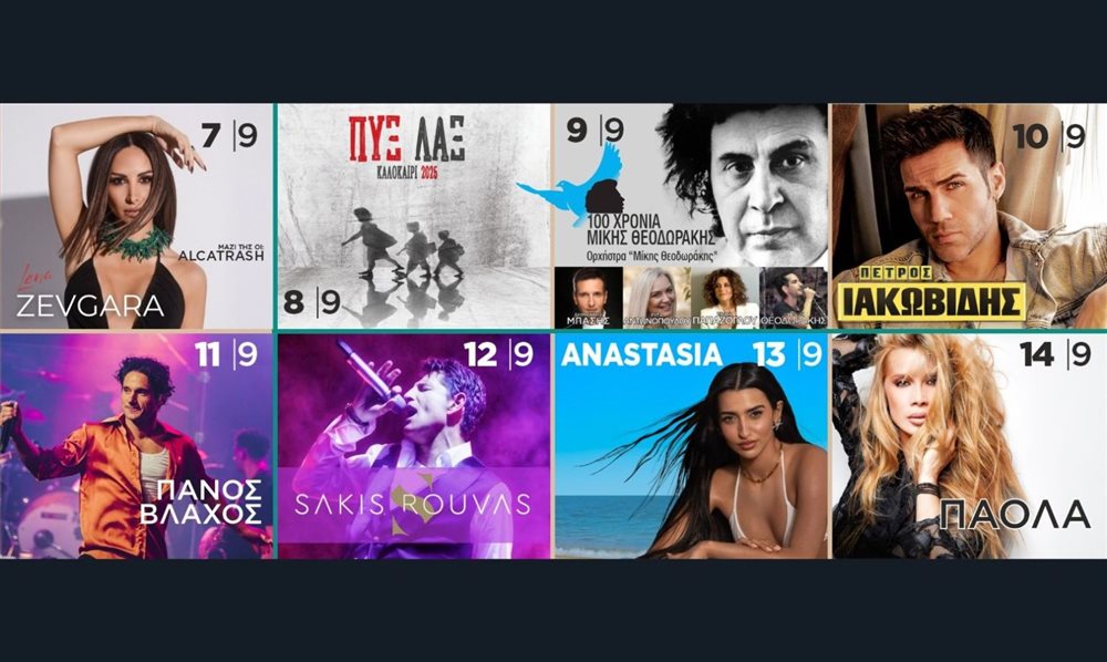 Δευτέρα, 8 Σεπτεμβρίου: Οι θρυλικοί Πυξ Λαξ ανεβαίνουν στη σκηνή για να ταξιδέψουν το κοινό με τις διαχρονικές ροκ μελωδίες τους, σε μια εμφάνιση που αναμένεται να μείνει αξέχαστη.